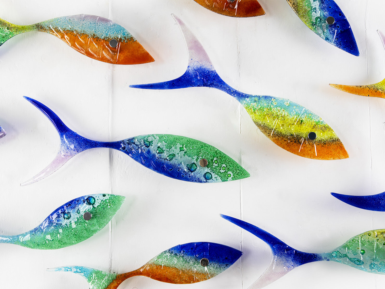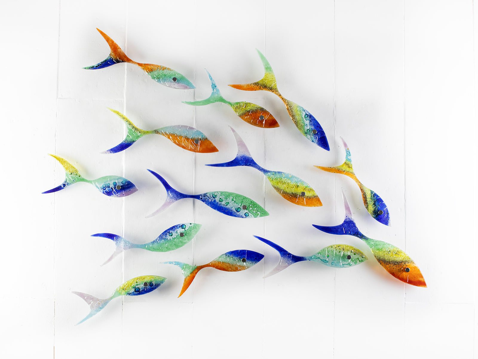 Enjoy having a part of the ocean within your home interiors with Jo's iconic Shoaling Fish Installations. Choose either a bespoke Artisan design or one of our classic's such as Aqua, Marine, Gwithian, Sea Pink or Indian Summer.